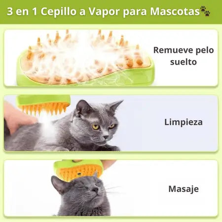 Presentamos el Cepillo a Vapor para Perros y Gatos, diseñado para convertir el cepillado en un momento de relajación y limpieza eficiente