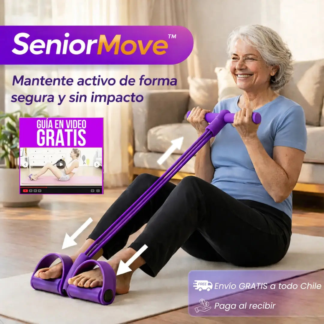 SeniorMove™ te ayuda a moverte en casa de forma simple y segura, ideal para aliviar la rigidez causada por la falta de movimiento.